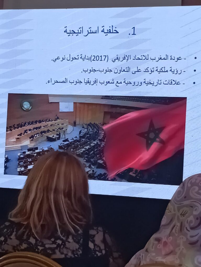وتابع الدكتور بلمير موضحًا أن هذا التوجه يعكس مغربًا جديدًا وملكًا يؤمن بأن بناء المستقبل يعتمد على التفاعل لا الانعزال، وأن العمل من داخل المؤسسات أكثر نجاعة من البقاء خارجها. وأكد أن الحضور المغربي في إفريقيا لم يعد مجرد خيار دبلوماسي أو توجه اقتصادي ظرفي، بل تحول إلى استراتيجية متكاملة تستند إلى رؤية ملكية واضحة ترتكز على الشراكة والتضامن والتنمية المشتركة، حيث يحرص المغرب، وهو يعزز موقعه كفاعل إفريقي، على تجاوز الربح المادي نحو إحداث تأثير ثقافي واجتماعي أعمق.